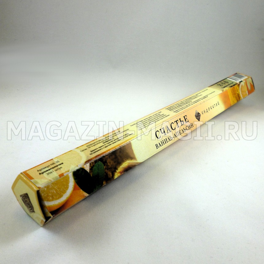 Благовоние, сочетающее в себе смесь Ванили и Апельсина, имеет тонкий, нежный и сладкий аромат. Поможет справиться с депрессией, апатией и стрессом, поднимет самооценку и придаст уверенности в своих силах. Ваниль привлечет финансовое благополучие, наполнит добротой и радостью. Позволит наладить отношения с людьми, снимет напряжение и усталость. Апельсин восстановит силы, укрепит энергетику, прогонит страх и раздражительность. Сочетание этих ароматов создаст ощущение весны, обновления и оптимизма. Для достижения большего эффекта благовония рекомендуется возжигать их на растущей луне.