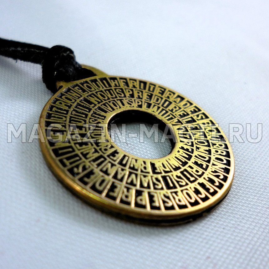 Тайный круг магических заклинаний. Магический код знаменитого графа Алессандро Калиостро. Известный маг, оккультист и алхимик, используя произвольные сочетания букв из трёх ключей, сотворил заклятия, исполняющие самые сокровенные желания. Если сконцентрироваться на ключе, то дарует способности к спиритизму и предвидению.