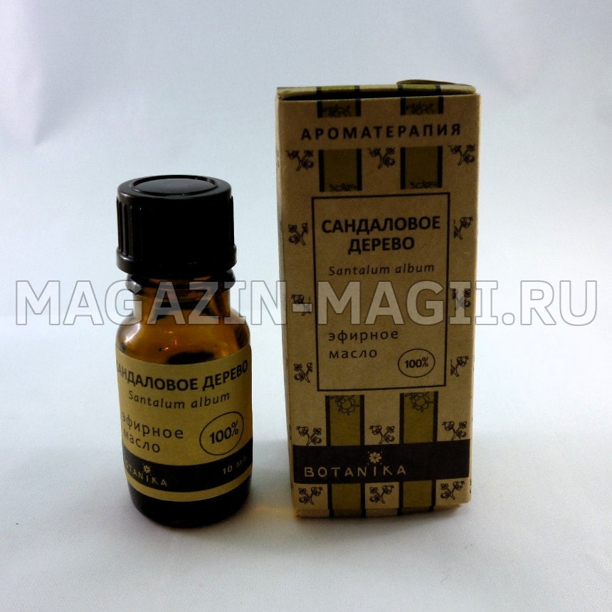 Экзотический, устойчивый и нежный запах, вот как можно охарактеризовать это эфирное масло. Его аромат умиротворяет, в следствие чего он используется для медитаций и упражнений йоги. Благоухание сандала дарует яркие сновидения, помогает раскрыть свою интуицию. В плане энергетики он восстанавливает биополе человека. Часто используется для зелий афрозодиака. Лучшее сочетание с жасмином, лимоном, розой, нероли, миррой, иланг-илангом.