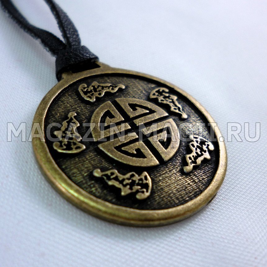 Символ Пяти Благ: долгая жизнь-здоровье-мир-счастье-добродетель. Происходит из культуры древнего Китая, данный знак, носимый на одежде, военных щитах и украшениях, символизирует пять летучих мышей вокруг знака "Универсум Вечности". Очень благоприятный знак, так же известен в тысячелетней китайской традиции с древних времен. По традиции, благоприятный подарок в тех случаях, когда желают долгой и счастливой жизни, а также достатка и понимания близким людям. Полезен и для ношения и для размещения в доме.