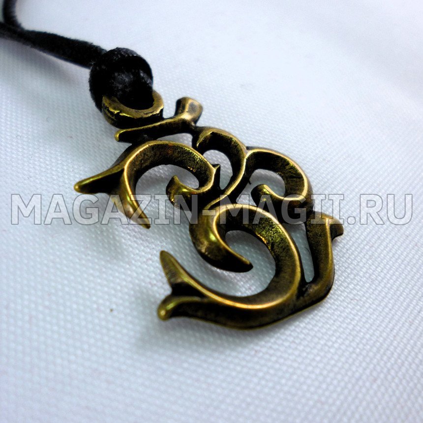 Знак «Ом» очень древний магический символ мистерий индии и Тибета, имеющий отношение к буддизму и индуизму. Символизирует визуальную форму мантры особого звука, открывающего озарение, очищающего ум и умиротворенность. Усиливает связь с высшими силами и космосом в целом. В буддизме его связывают с постижением Освобождения и просветления.